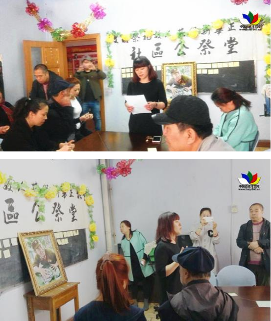 為了方便居民文明祭祀,繁榮街道新華社區(qū)設立了公祭堂,為轄區(qū)居民開展文明祭祀提供方便,共60多位居民到場參加了祭祀活動。