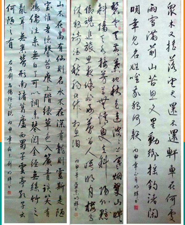劉明輝1961年出生。自幼酷愛書畫,得到著名書法家李持恒老師的指導(dǎo)。1981年--1985年進(jìn)入沈陽市鐵西區(qū)書法研究班學(xué)習(xí),師從徐熾老師,先后臨摹王羲之、米蒂、王鐸等大量古今中外書家的字帖、書作。經(jīng)過多年磨礪、作品逐漸己貌。現(xiàn)為郭明義愛心書畫家團(tuán)隊(duì)副團(tuán)長、百姓才藝網(wǎng)書畫院會員。