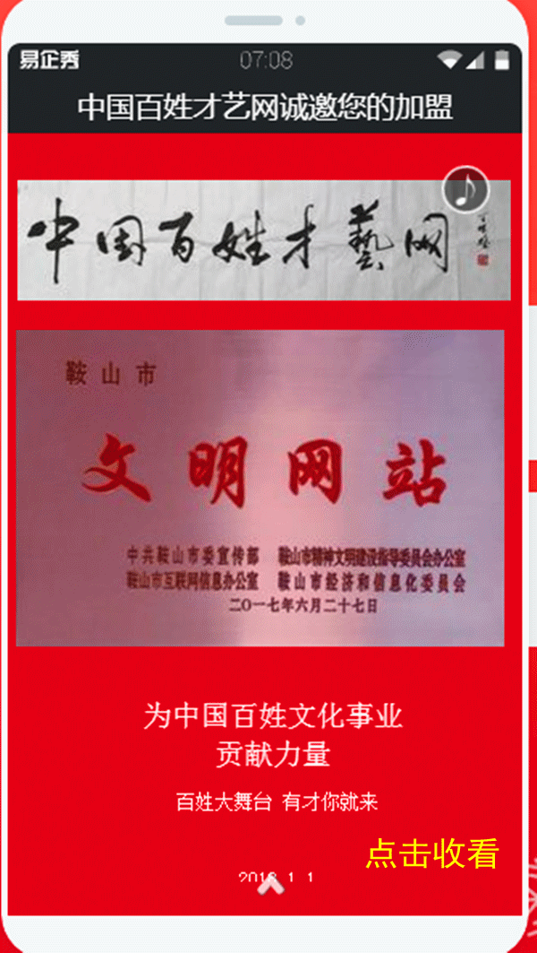 百姓才藝網(wǎng)心系百姓,放眼大目標(biāo),決心再努一把力,再上一層樓,為切實(shí)打造網(wǎng)絡(luò)文化產(chǎn)業(yè),進(jìn)一步繁榮和發(fā)展網(wǎng)絡(luò)文化產(chǎn)業(yè),為實(shí)現(xiàn)百姓的中國夢、幸福夢而努力奮斗,向著更宏偉的目標(biāo)大步前進(jìn)!