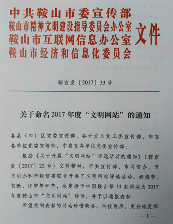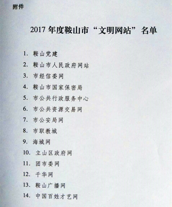 百姓才藝網(wǎng)榮獲鞍山市“文明網(wǎng)站”稱號