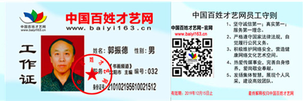 郭振德同志為百姓才藝網沈陽市書畫頻道主編