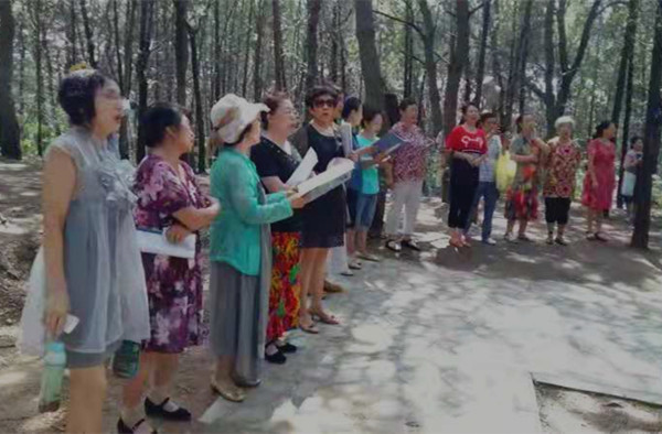他是一位離休干部,自己掏腰包,用自己的錢為團里的歌友們打印歌篇,還幫助困難戶,雖然96歲了,但張壽嶺老人唱起歌來很動聽,因為他是革命年代的人,他和年青人一起跳舞,大家玩的非常開心快樂!