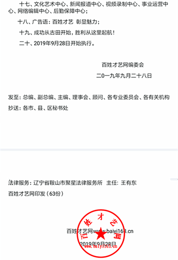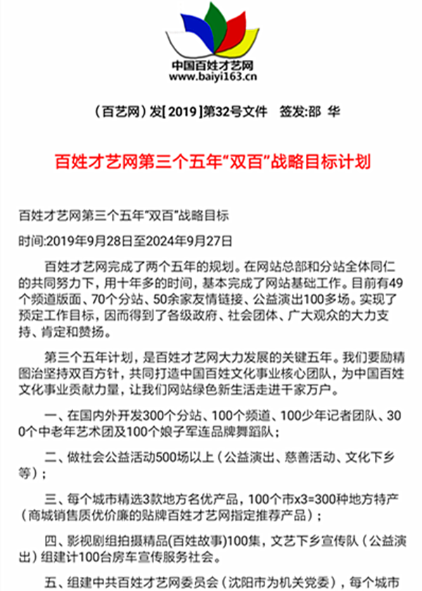 (百藝網)發[ 2019 ]第32號文件 簽發:邵 華