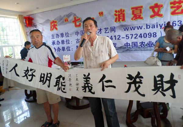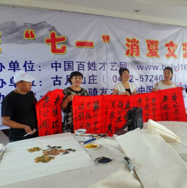 為紀念中國共產黨建黨94周年,不忘中國共產黨締造的宏偉基業(yè)。2015年6月30日,百姓才藝網在遼寧省千山腳下“古月山莊”舉辦了名家書畫筆會,60多名書畫家參加了本次活動。