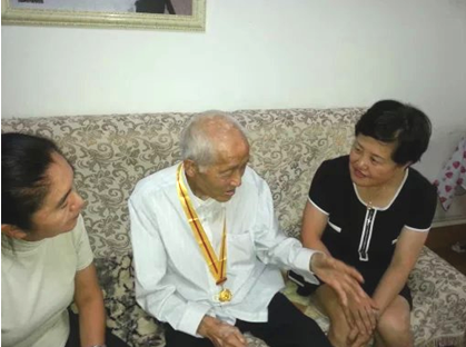 百姓才藝網(wǎng)特約通訊員 劉忠會 文/攝影 2015年9月1日上午,遼寧省鞍山市第三醫(yī)院黨委書記邴英、工會主席路晶及老干辦、組織部人員來到了離休老干部、抗日老戰(zhàn)士石懷順家中,邴英書記親自為石懷順佩帶了中國人民抗日戰(zhàn)爭勝利70周年紀念章,石懷順老人含著激動的淚花撫摸著體現(xiàn)黨的關(guān)懷和愛戴的紀念章說:“謝謝黨、謝謝人民,黨和人民沒有忘記我們?yōu)榭谷諍^戰(zhàn)的老兵”。今年已93歲高齡的石懷順老人還向大家講述了當年他參加新四軍的光榮歷程。
