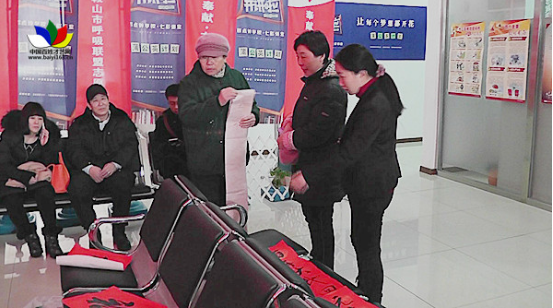 百姓才藝網(wǎng)訊(張宇 文/攝影 )為弘揚中國傳統(tǒng)文化,豐富群眾的文化生活,積極營造歡樂、喜慶、文明、和諧的傳統(tǒng)節(jié)日氣氛。1月25日,遼寧省鞍山市紅嶺街道邀請了鐵西社區(qū)服務(wù)促進會書畫院的著名書畫家金鶴齡、祝恩霜等二十余位書法名家,在鞍山市新魏社區(qū)一樓大廳舉行了“翰墨飄香迎新春·送春聯(lián)”文化惠民活動,這次惠民活動將新春的祝福提前送給社區(qū)居民。