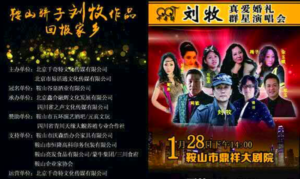 原創(chuàng)音樂人、鞍山驕子劉牧先生于2016年1月28日下午2點,在遼寧省鞍山市鼎祥大劇院舉辦了回饋家鄉(xiāng)原創(chuàng)歌曲演唱會。