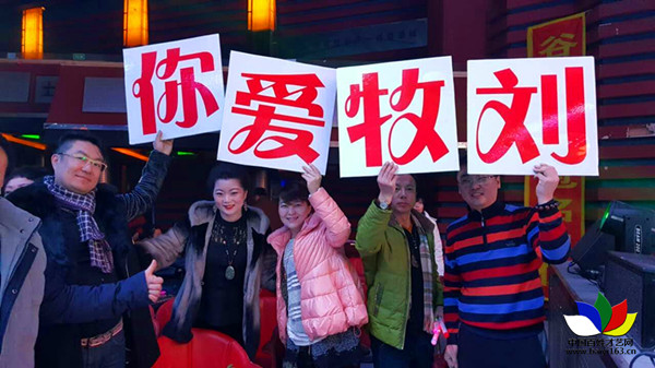 從外地來的劉牧粉絲高舉牌子“劉牧愛你”