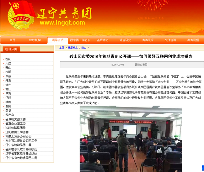 鞍山團市委2016年首期青創公開課——如何做好互聯網創業成功舉辦