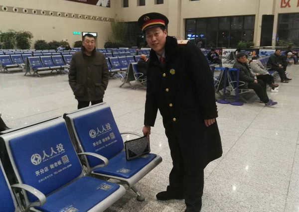 沈陽(yáng)鐵路局鞍山西高鐵車站職工史新在候車室凳子上發(fā)現(xiàn)一個(gè)黑色手包