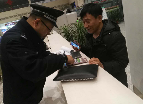 百姓才藝網(wǎng)訊(邵華 文/攝影)2017年3月3日晚上19.50分,沈陽(yáng)鐵路局鞍山西高鐵車站職工史新在候車室拾到一個(gè)黑色手包,立即把這個(gè)高檔手包交給了鞍山西站鐵路派出所值班民警袁慶成,小袁把手包打開(kāi)一看,馬上意識(shí)到丟包者一定非常著急。包內(nèi)有14張銀行卡、現(xiàn)金2476元、美容卡、刷卡器等,民警袁慶成通過(guò)手包內(nèi)一個(gè)美容卡上的服務(wù)電話了解到手包丟失者戴xx及手機(jī)號(hào)碼,隨手撥通戴女士電話,戴女士正在G722去大連的高鐵車上,包丟不到10分鐘就找到了,她萬(wàn)分高興,即刻給在鞍山的親屬打電話去取包。