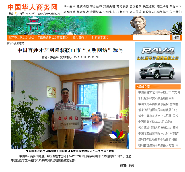 百姓才藝網(wǎng)榮獲鞍山市“文明網(wǎng)站”稱號