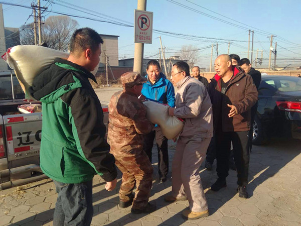 鞍山球迷們與當(dāng)代雷鋒郭明義一起搬運(yùn)生活用品