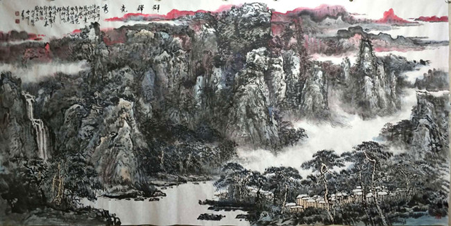 畫家聞世順新作《群峰競(jìng)秀》著名作家題詩(shī)