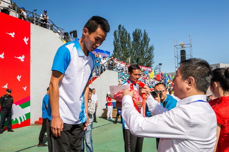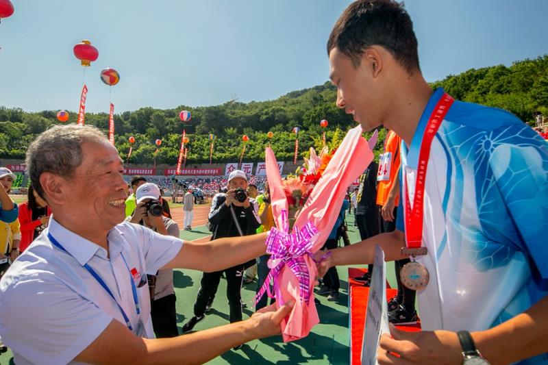 在鞍鋼集團第二屆職工運動會上,董事長、黨委書記姚林為獲獎選手頒獎。