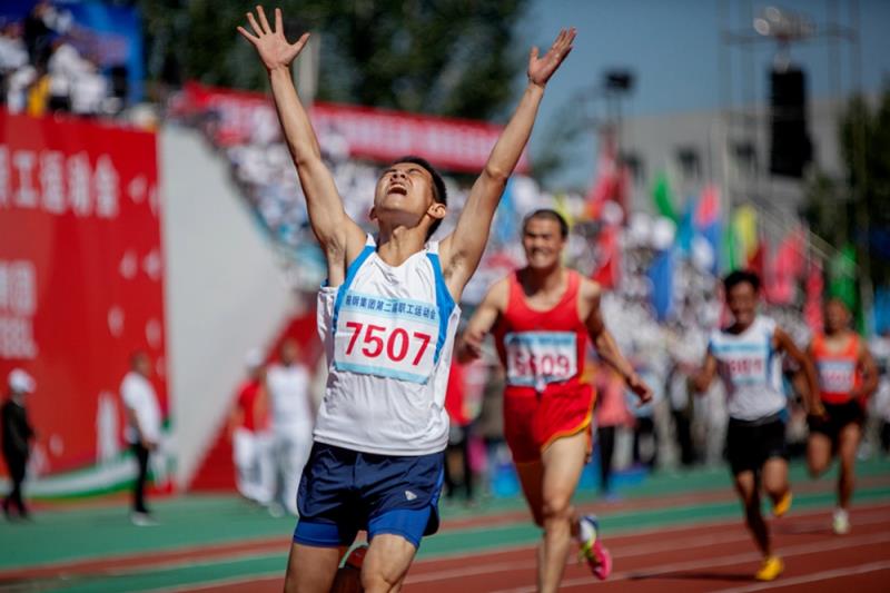 比賽賽場沖刺冠軍的喜悅