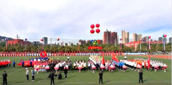 運動會開幕式規模宏大,形式新穎,氣氛熱烈。檢閱隊伍服裝整齊、步伐鏗鏘、口號嘹亮,英姿颯爽地接受了主席臺的檢閱。典雅旗袍風悠揚唯美,卡通玩偶風可愛明快,激情拉丁風熱情似火,動感街舞風青春飛揚,一組組新穎的入場方式充滿激情和活力。