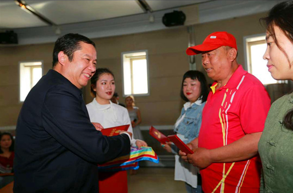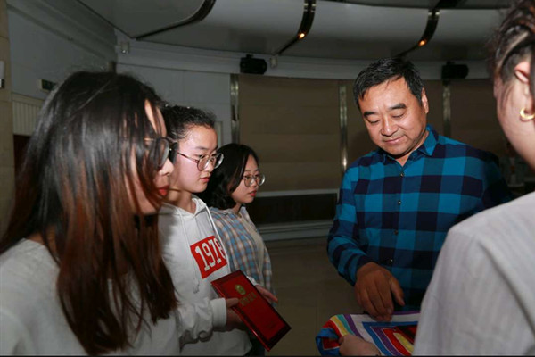 鞍山市文學藝術界聯合會主席宋士剛為獲獎者頒獎(右一)