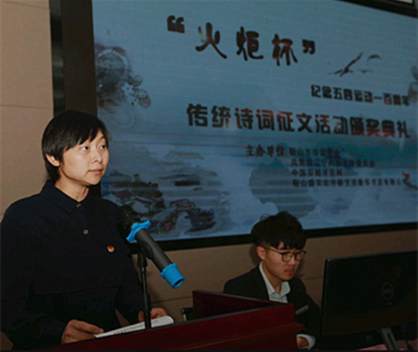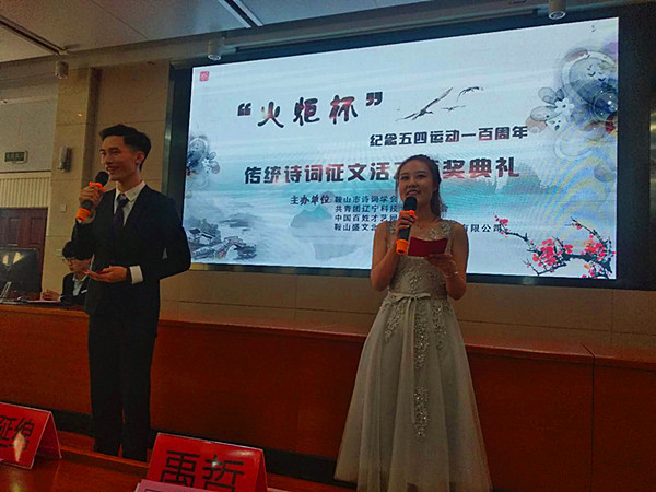 百姓才藝網鞍山快訊(康成明/攝影 梅語花香/文)由遼寧省鞍山市詩詞學會、共青團遼寧科技大學委員會會同鞍山盛文北方新生活新華書店有限公司、百姓才藝網共同主辦的“火炬杯”紀念五四運動一百周年傳統詩詞征文活動,歷時兩個月,日前圓滿結束。
