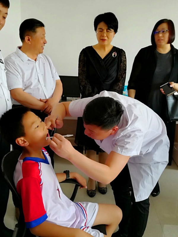 2、口腔檢查義診活動和《我是小小護(hù)牙士》科普宣教講座,教會孩子們?nèi)绾伪Wo(hù)口腔健康,由民革黨員、口腔專家李峰做檢查和宣講。