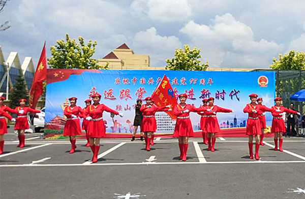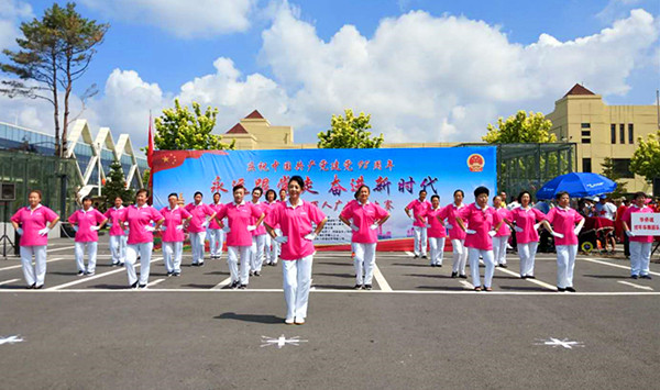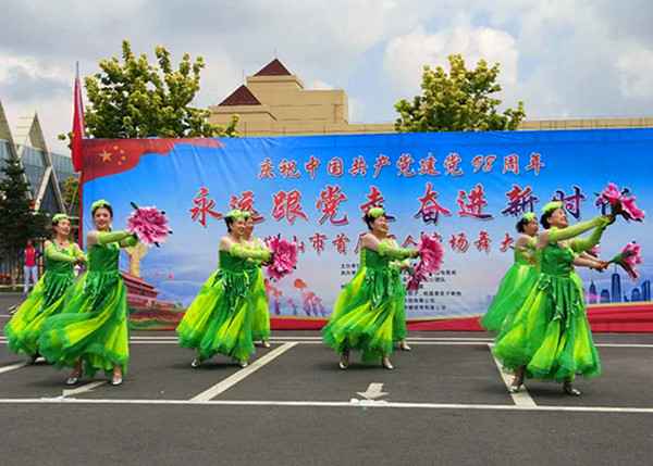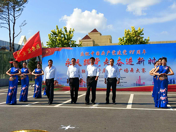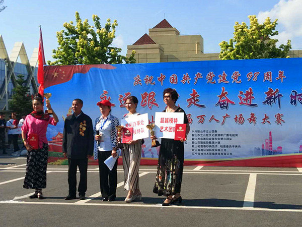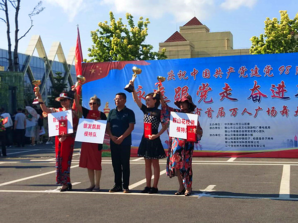 百姓才藝網鞍山訊(邵華/文 花香/攝影)為慶祝中國共產黨建黨98周年,永遠跟黨走、奮進新時代。遼寧省鞍山市首屆萬人廣場舞大賽于7月1日在遼寧省鞍山市立山區(qū)沙河萬水河畔文化廣場隆重舉行。