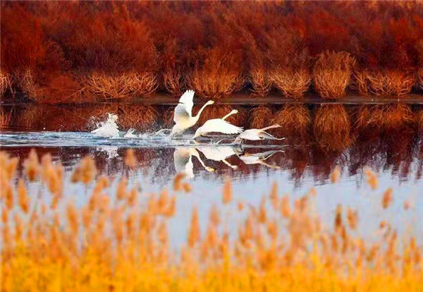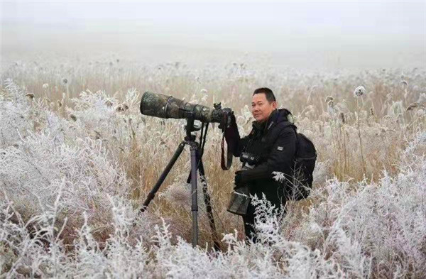 12月5日,天剛蒙蒙亮,王洪峰就來到濕地周邊,一邊進(jìn)行攝影創(chuàng)作,一邊開展巡護(hù)。王洪峰的家就在濕地附近,多年來,他早已養(yǎng)成習(xí)慣,只要有時(shí)間就往濕地里扎。