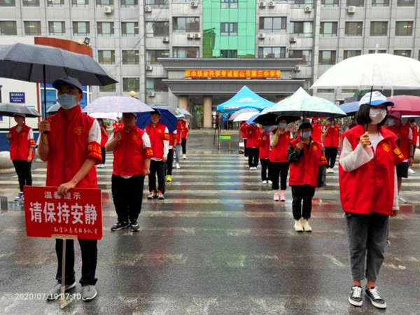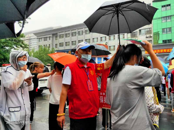 19日上午,遼寧鞍山市細雨綿綿,志愿者們依然服務于中考的學生們,愛心永恒,好人一生平安。潤物細無聲,中考志愿情。