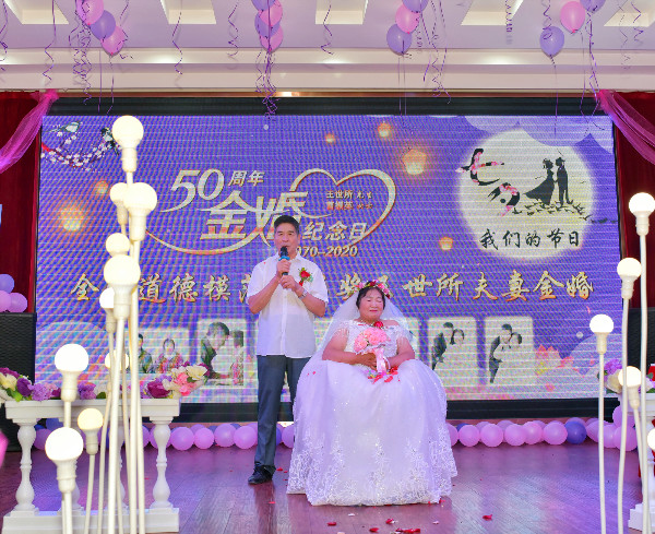 對他而言,50年,不僅僅是一個見證堅貞不渝婚姻的數(shù)字,也是一段引人垂淚的動人故事。兩位老人的事跡一次次感動在場的嘉賓與志愿者。在這場婚禮中,振峰公益團隊志愿者各顯其能,充當起了化妝師、跟拍師、攝像師等等,大家齊心協(xié)力,就是為了為兩位老人圓一場金婚夢。
