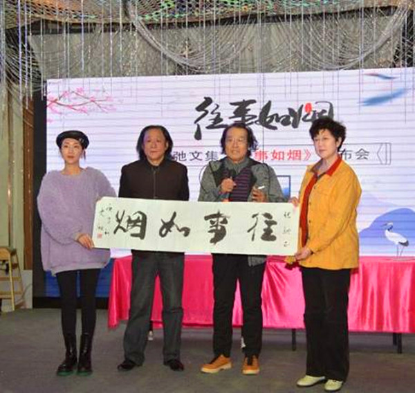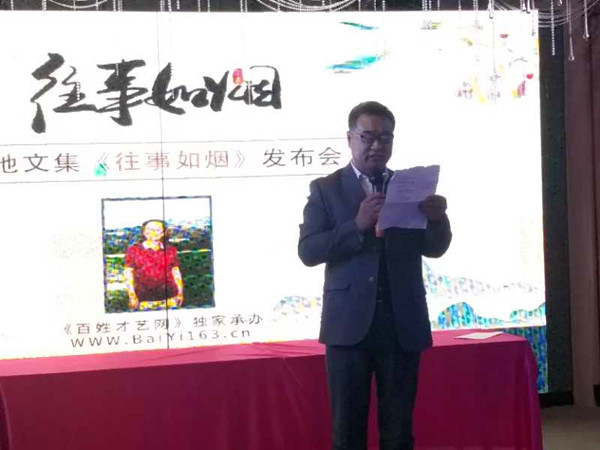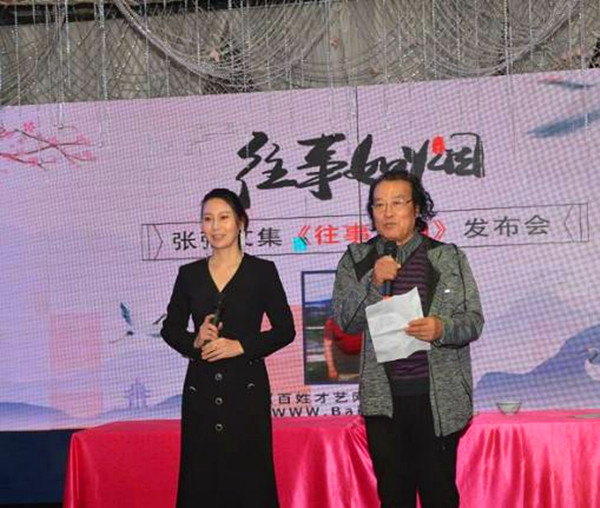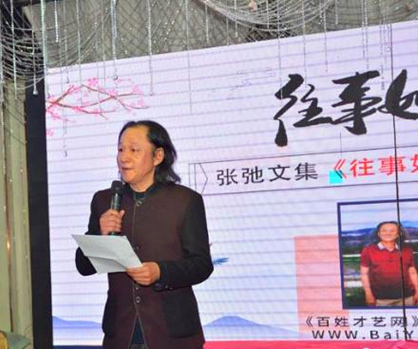 在二樓舞臺(tái)中央頻幕上,鮮亮地閃著“往亊如煙”張弛最新作品發(fā)布會(huì)的字幕。張弛,可稱體制外的知名民間作家。近年來創(chuàng)作頗豐,平均每兩年即行出版一部內(nèi)容豐富、翔實(shí)動(dòng)人,裝幀華美的詩文合集。非常受朋友和廣大讀者歡迎,得致一致好評。繼《歲月如歌》、《春秋似夢》之后,今天又赫然出版《往亊如煙》詩文集,該集由著名作家、文藝評論家端木納德作序;由著名作家、文藝評論家李金平、李德義作跋。