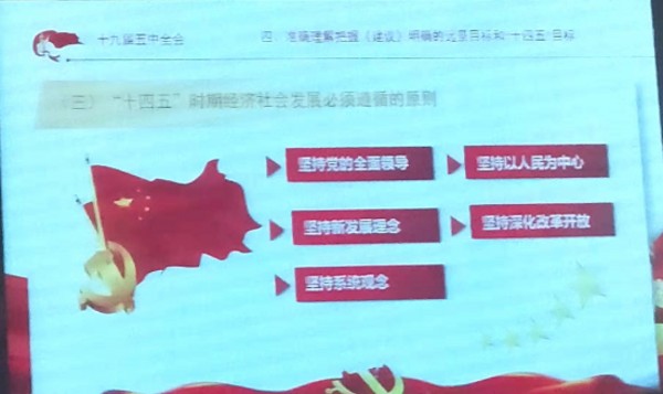 李海波結(jié)合當下形勢,深入解讀了十九屆五中全會精神內(nèi)涵“十四五”規(guī)劃和二〇三五年遠景目標,描繪的未來五年我國發(fā)展的宏偉藍圖,標志著我國全面建設社會主義現(xiàn)代化國家新征程之路正式啟航。報告嚴謹生動、深入淺出,論述精辟、見解獨到。