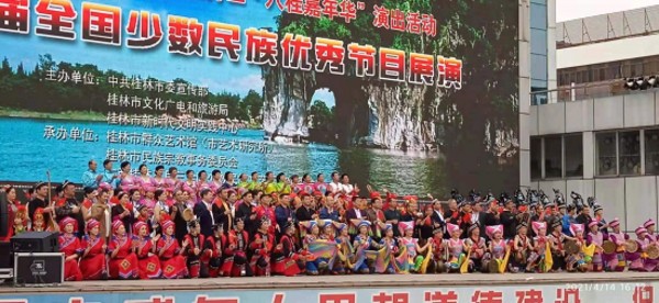 這次活動由中共桂林市委宣傳部,桂林市文化廣電和旅游局,桂林市新時代文明實踐中心主辦,以及桂林市群眾藝術館、桂林市民族宗教事務委員會、廣西桂林三月三全國少數(shù)民族主委會承辦。來自全國12個省市,14支隊伍的精彩演出,受到現(xiàn)場觀眾的熱烈歡迎和贊譽。
