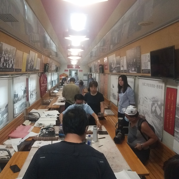 10余節的文化列車,車廂里布滿了書法繪畫作品、攝影作品。所有到場的干部職工紛紛贊美參展作品,感慨中國鐵路巨大變化。