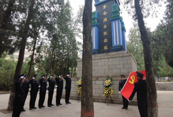 在革命烈士紀念塔前,民警們向長眠于此的革命烈士敬獻鮮花。綏德所黨支部書記李玉龍說“我們緬懷革命先烈,就是要以先烈為榜樣,不忘初心,牢記使命,學習他們無私奉獻,敢于犧牲的大無畏精神。”教導員霍向峰向民警講解三五九旅在綏德的紅色歷史,和在社會主義建設事業(yè)中犧牲的英烈事跡。革命先輩們不怕犧牲、為革命理想奮斗的精神深深感染了民警們,大家紛紛表示要以實際行動去踐行共產(chǎn)黨人的初心使命。