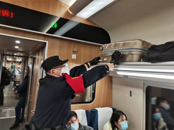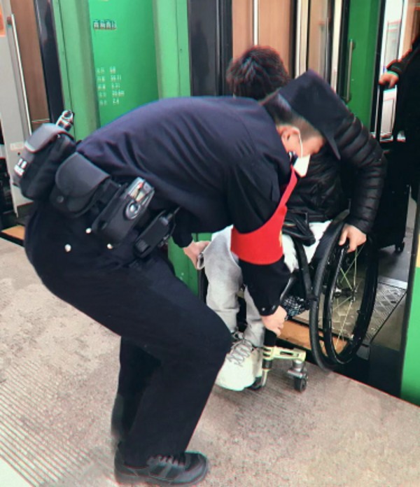 2022年3月4日,乘警李帥在車廂巡邏時發(fā)現(xiàn)一坐輪椅男子無人陪伴,便上前詢問,得知該男子一人乘車西安站有家人等待,一路上李帥悉心照顧,列車到站后,李帥將該男子安全交給家人,家人對乘警李帥的貼心服務(wù)贊不絕口!