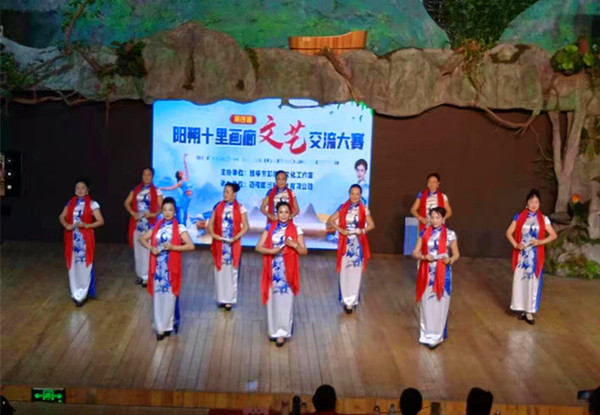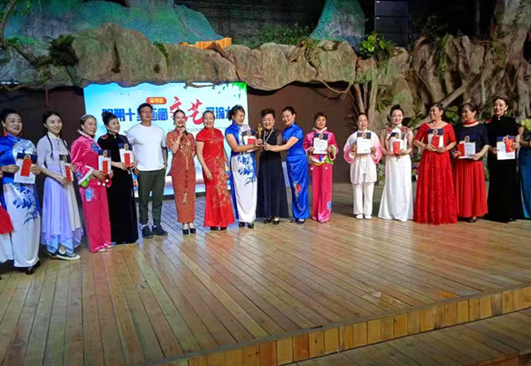 參加演出共I3個文藝團隊,有舞蹈《鼓動天地》、《秋水伊人》,旗袍秀《紅棗樹》,舞蹈《我愛你中國》、《唱起彩調(diào)迎客來》,舞韻瑜伽《不柒》,旗袍身韻《秀麗江南》、《姑蘇月亮》,大合唱《我和我的祖國》,長絲巾《花雨紛飛》,迎賓新村《紅梅花又開了》,時裝秀《紅衣青笠》,模特表演《功夫扇》。