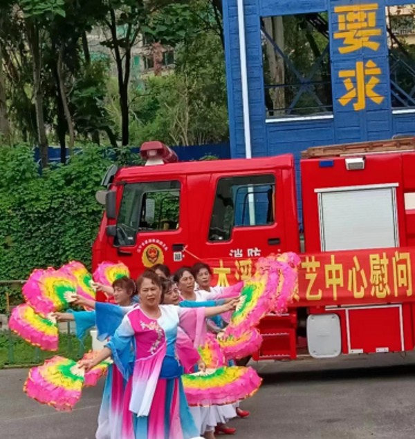 遼寧省本溪山城藝術(shù)團(tuán)舞蹈隊(duì)在隊(duì)長(zhǎng)李泰林、演藝中心主任楊玉良的帶領(lǐng)下,7月31日下午3點(diǎn)來(lái)到了本溪市平山消防隊(duì),慰問(wèn)消防官兵,同慶八一建軍節(jié)。上演了精彩的文藝節(jié)目,扇子舞《祖國(guó)你好》等節(jié)目,深受官兵稱贊。