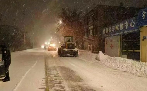 每天凌晨2點(diǎn),市容環(huán)境衛(wèi)生服務(wù)中心加大督導(dǎo)機(jī)械和人工清除積雪力度,出動(dòng)鏟車16臺(tái)、鉤機(jī)2臺(tái)、拋雪機(jī)2臺(tái)、大型清運(yùn)車30余臺(tái),對縣內(nèi)主次干道不間斷清運(yùn)積雪。為確保城區(qū)道路暢通,不影響車輛交通,方便市民出行,縣內(nèi)主次干道積雪采取同時(shí)進(jìn)行清運(yùn)方式,目前,已清運(yùn)積雪近600車/次,18000余立方米。市容環(huán)境衛(wèi)生服務(wù)中心將出動(dòng)全部力量,確保在最短時(shí)間內(nèi)完成清運(yùn)積雪任務(wù),保障全縣人民安全出行。雪落無聲,奉獻(xiàn)有痕。環(huán)衛(wèi)工人們用掃帚和鐵鍬一寸一寸鏟冰除雪,寒風(fēng)凜冽中他們凍僵了雙手卻依然堅(jiān)守在崗,積雪深厚滑倒了爬起繼續(xù)作業(yè),他們用自己的辛苦和汗水換來道路的暢通無阻,不知疲憊的雙腳丈量著城市的每一條街道,讓我們一起向風(fēng)雪中最美的堅(jiān)守者致敬!