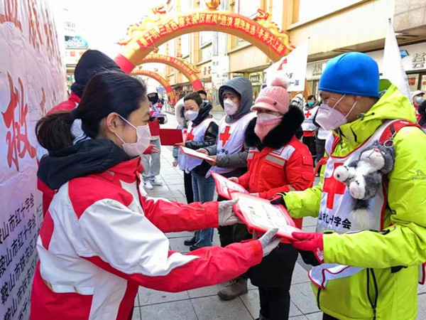 現(xiàn)場(chǎng)共有29名紅十字志愿者獻(xiàn)血,獻(xiàn)血量6000余毫升。志愿者們紛紛表示:“無(wú)償獻(xiàn)血是每一位志愿者應(yīng)該承擔(dān)的一份社會(huì)責(zé)任,能夠在社會(huì)最需要的時(shí)候奉獻(xiàn)愛(ài)心,力所能及地做貢獻(xiàn),感到十分自豪”。鞍山市紅十字三獻(xiàn)志愿服務(wù)團(tuán)隊(duì)現(xiàn)場(chǎng)還開(kāi)展了無(wú)償獻(xiàn)血的宣傳活動(dòng)。志愿者們冒著嚴(yán)寒,給現(xiàn)場(chǎng)的市民、營(yíng)業(yè)網(wǎng)點(diǎn)的員工和小區(qū)的群眾等發(fā)放無(wú)償獻(xiàn)血的宣傳單,耐心地為大家講解無(wú)償獻(xiàn)血的知識(shí)和相關(guān)政策。志愿者們現(xiàn)場(chǎng)組織和引導(dǎo)獻(xiàn)血者進(jìn)行獻(xiàn)血登記、測(cè)量血壓、抽血化驗(yàn)和采血等。鞍山市紅十字會(huì)黨組書(shū)記、常務(wù)副會(huì)長(zhǎng)趙世朋,為鞍山市紅十字愛(ài)行天下志愿服務(wù)隊(duì)、鞍山市紅十字青少年志愿服務(wù)隊(duì)、鞍山市紅十字新一中社區(qū)志愿服務(wù)隊(duì),鞍山市紅十字黎明社區(qū)志愿服務(wù)隊(duì)、鞍山市紅十字鑫山物流服務(wù)隊(duì)授旗。