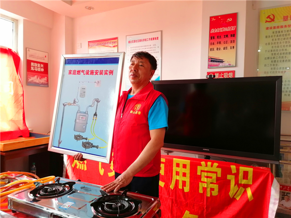 曲洪強(qiáng)在達(dá)道灣街道睿達(dá)社區(qū)進(jìn)行安全使用燃?xì)庵v座