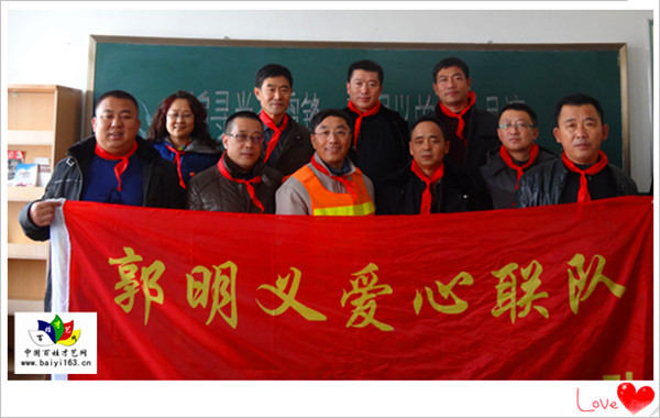 郭明義愛(ài)心團(tuán)隊(duì)——鞍山市聚星法律服務(wù)所分隊(duì),是鞍山市法律界成立的第一支愛(ài)心團(tuán)隊(duì)。該團(tuán)隊(duì)自成立以來(lái),每年都會(huì)向貧困家庭的孩子提供助學(xué)金,幫助他們完成學(xué)業(yè)。該分隊(duì)在隊(duì)長(zhǎng)即鞍山市聚星法律服務(wù)所主任王有東的帶領(lǐng)下,隊(duì)伍不斷壯大,隊(duì)員均來(lái)自鞍山市,他們本著“幫助他人,快樂(lè)自己”的理念,向貧困家庭孩子伸出溫暖之手,為這些孩子們略盡綿薄之力。