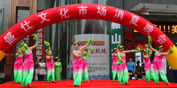 鞍山新興盛仕文化市場(chǎng)消夏晚會(huì) 舞蹈《中國(guó)美》拉開(kāi)序幕