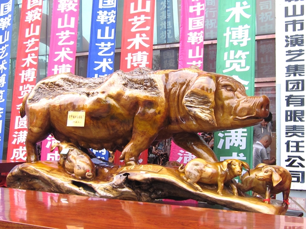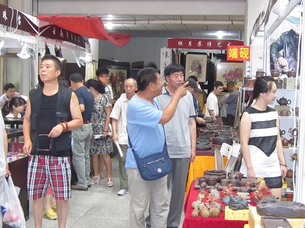 由鞍山報業集團主辦,鞍山市文化產業協會承辦的2014中國(鞍山)珠寶、書畫、藝術品博覽會于7月24日在鞍山藝術大廈隆重揭幕。在文化藝術大廈門前,一些大型的木雕格外引人關注,一個“五福臨門”以豬為造型的木雕吸引了不少市民,紛紛拿出相機拍攝。“花開富貴”的木雕造型也是栩栩如生。進入文化藝術大廈展會現場,眾多紫砂壺作品吸引了不少紫砂愛好者,并與現場的全國工藝美術大師紫砂壺的作者進行交流,分享收藏和使用的心得。在這五天的時間里,市民將能觀賞和購買到珠寶玉石、寶石鉆戒、新疆白玉、緬甸翡翠、水晶瑪瑙、碧璽琥珀、陶瓷石雕、宜興紫砂、名家書畫、越南紅木、蘇州繡品、吉林浪木、福建木雕、紅木家具、福建壽山石、臺灣七彩玉、端硯等珍品。此次博覽會將歷時5天,希望廣大藝術愛好者和藏家莫失良機。