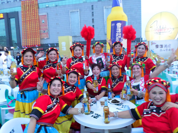 演出前演員們慶祝啤酒文化節(jié)的喜悅氣氛