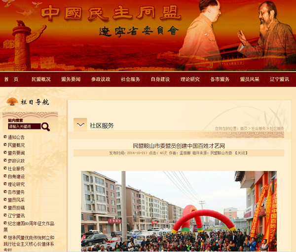 民盟鞍山市委盟員邵華,2010年5月20日經國家信息化部注冊備案通過,創建“百姓才藝網”www.lmtzj.cn。
