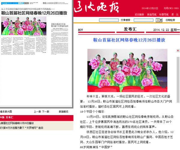 鞍山首屆社區(qū)網(wǎng)絡春晚