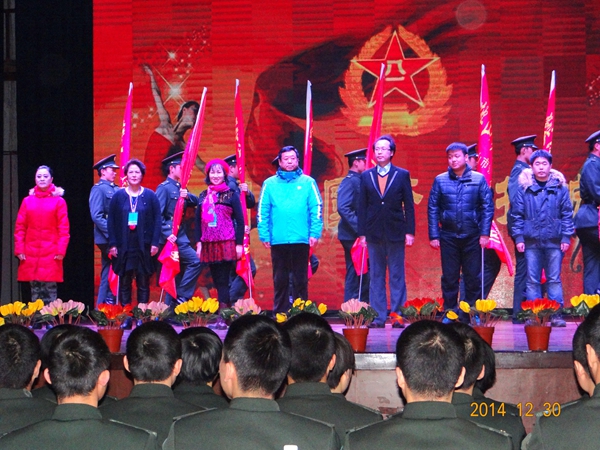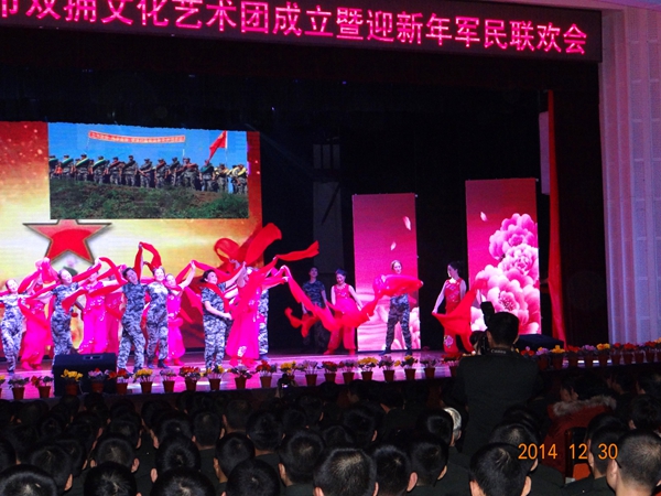 百姓才藝網(wǎng)快訊(李光 文/攝影)2014年12月30日上午,鞍山市雙擁文化藝術(shù)團(tuán)在海城駐鞍某部軍人俱樂(lè)部舉行了成立大會(huì),并進(jìn)行了首場(chǎng)演出,與全體官兵共同歡度新年的到來(lái)。中共鞍山市委和海城市委領(lǐng)導(dǎo)出席大會(huì)并觀看了演出,市委領(lǐng)導(dǎo)和部隊(duì)首長(zhǎng)還向藝術(shù)團(tuán)成員授旗。
