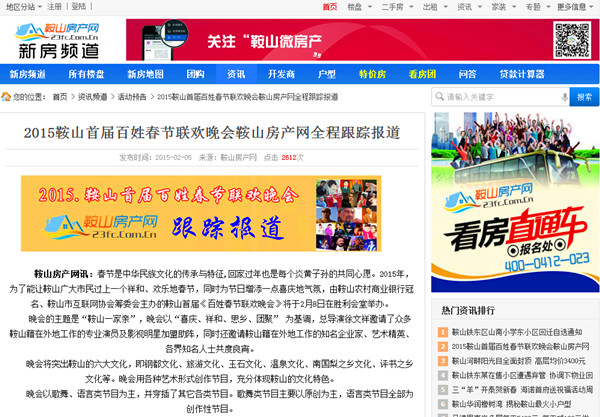 鞍山房產(chǎn)網(wǎng)跟蹤報道2015鞍山首屆百姓春節(jié)聯(lián)歡晚會