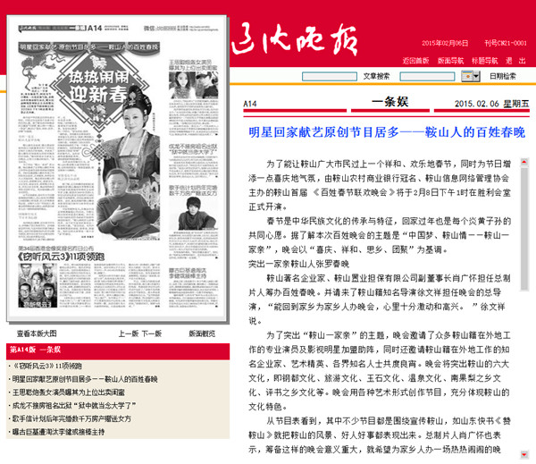 2015鞍山首屆百姓春節(jié)聯(lián)歡晚會跟蹤報道