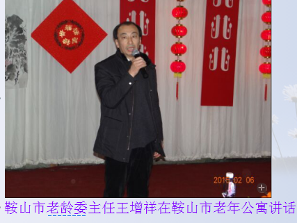 鞍山市老齡委黨組成員來到了演出現(xiàn)場,并祝福老年朋友們新春快樂幸福安康。院長李平對一年來關(guān)愛和支持老年事業(yè)的領(lǐng)導(dǎo)和愛心人士表示衷心的感謝。