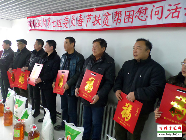 2015年2月10日下午,遼寧省鞍山市鐵東區(qū)政協(xié)第七組(文化體育委員會(huì))的16名政協(xié)委員們到園林街道東賓社區(qū)對(duì)貧困戶(hù)、孤寡老人進(jìn)行了春節(jié)前的慰問(wèn),送去了面粉、豆油、對(duì)聯(lián)。鐵東區(qū)政協(xié)副主席李路平也參加了此次扶貧幫困慰問(wèn)活動(dòng),把愛(ài)送到老百姓的家中,讓那些貧困戶(hù)過(guò)一個(gè)祥和愉快的春節(jié)。